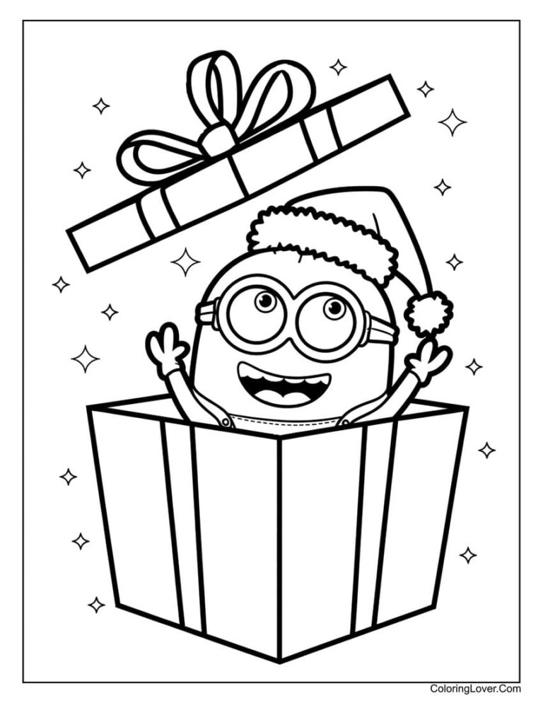 Minion Popping Out Of A Christmas Gift Box Coloring Page 768×994 1