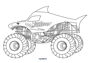 Megalodon Monster Truck Coloring Pages 300×212.webp