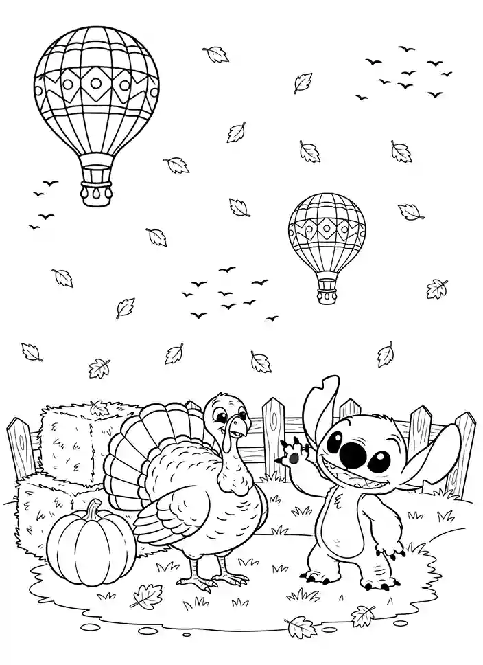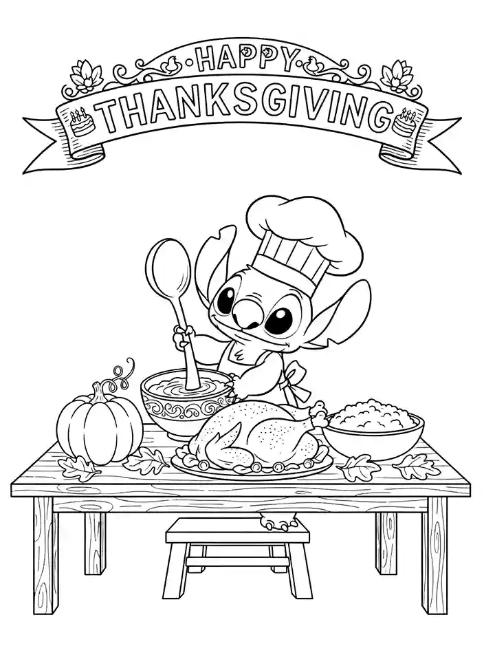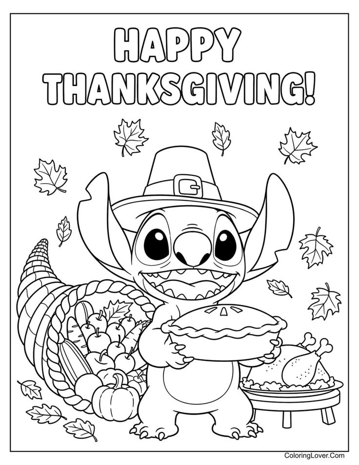 Disney Stitch Thanksgiving Coloring Page