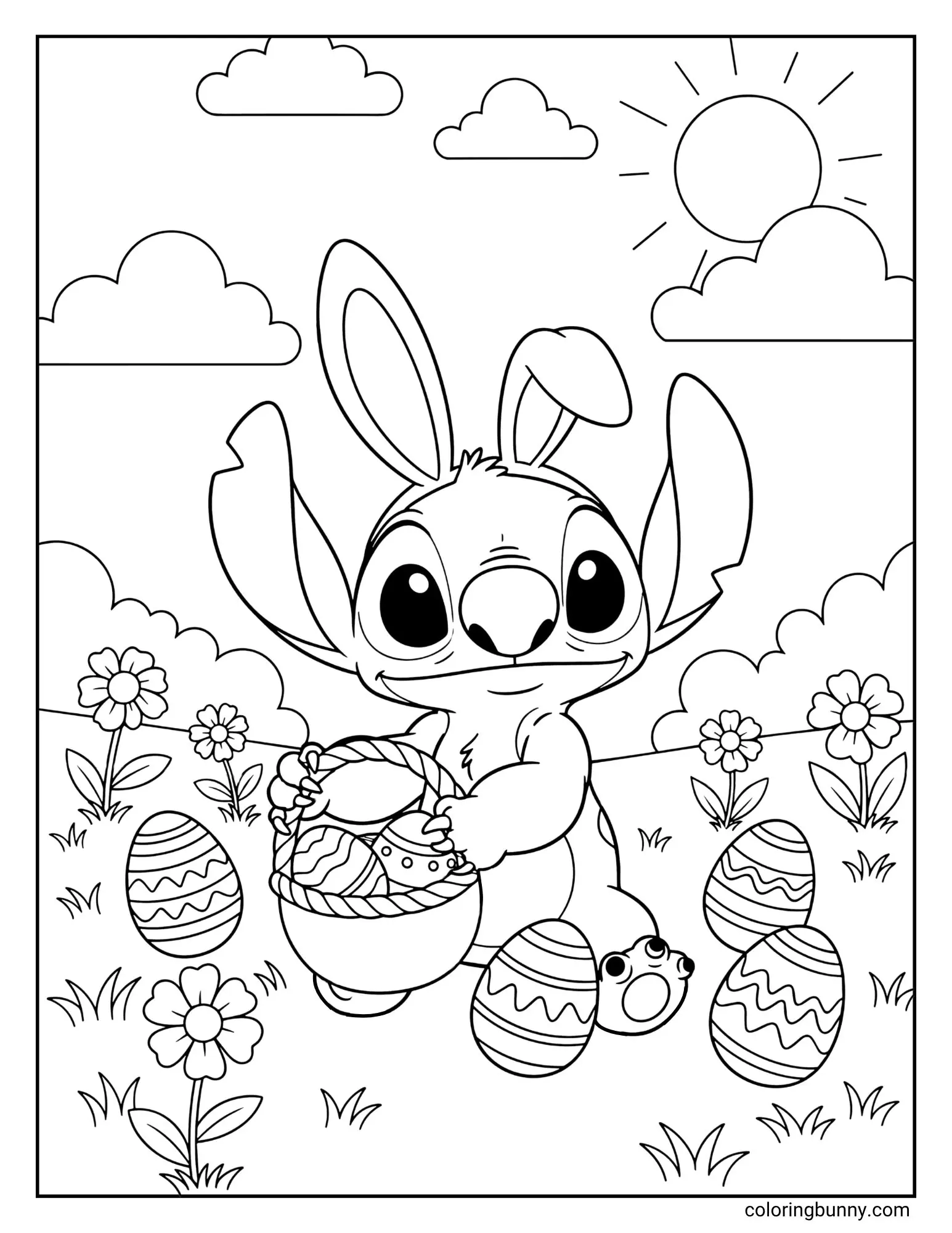Stitch collecting Easter eggs coloring page.jpg