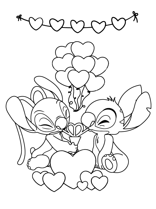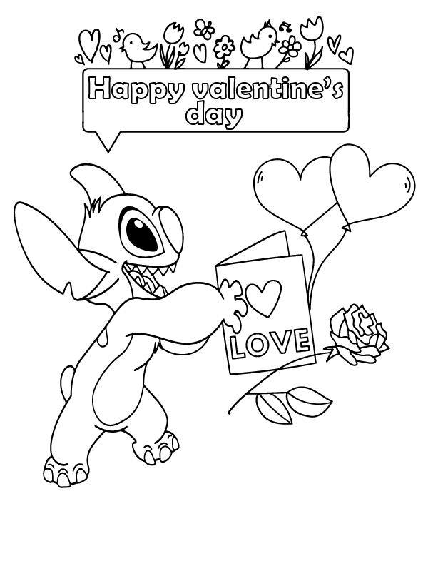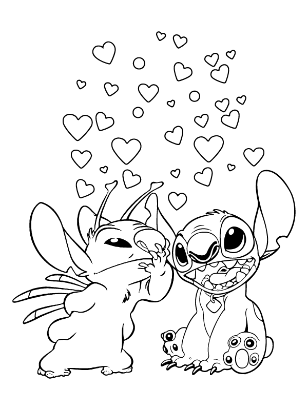 happy stitch valentines coloring page