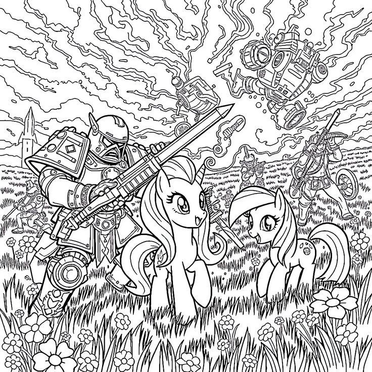 Lastly, this exquisite piece encapsulates the essence of Warhammer’s blend of fantasy and science fiction. The portrayal of robust figures against a fantastical backdrop offers an inspiring canvas for colorists to unleash their imagination and craft vibrant narratives of their own.