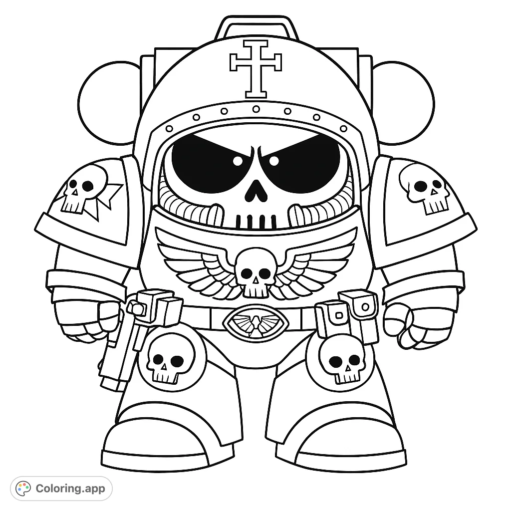 chibi space marine warrior coloring page