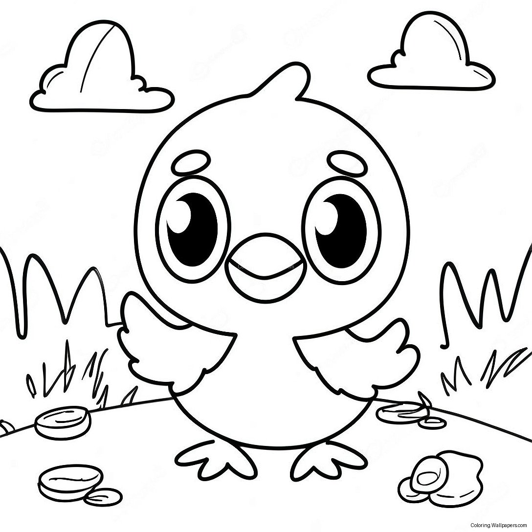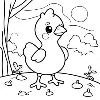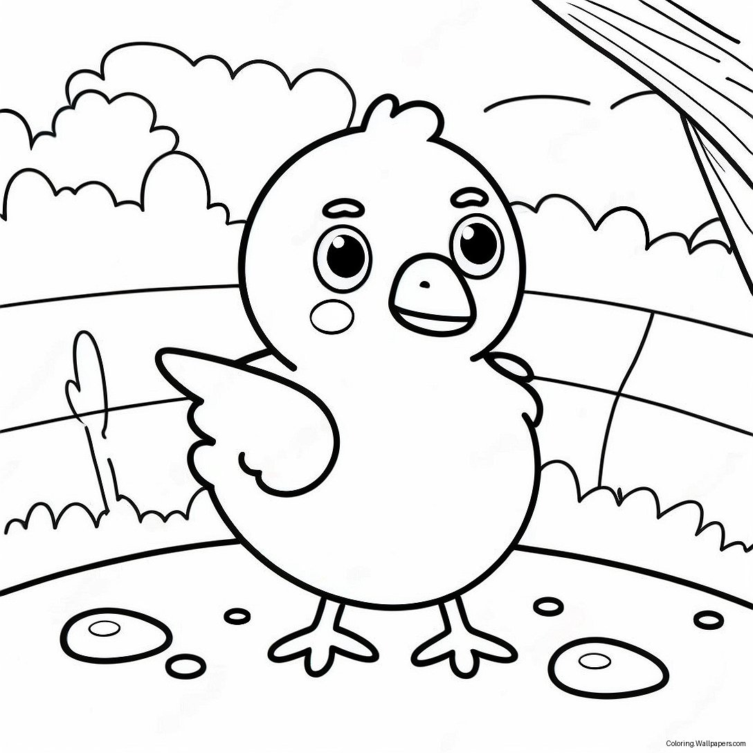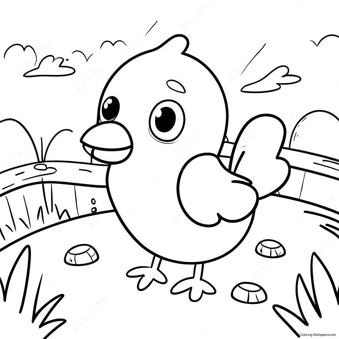 In this delightful illustration, Chicky is tucked away in a whimsical backdrop that includes enchanting elements such as blooming flowers, towering trees, and perhaps even a cozy farmhouse. The vibrant landscape not only invites vivid color choices but also encourages artists to think critically about their color palettes. Will you opt for warm yellows and oranges, or perhaps delve into the realm of pastels for a gentle aesthetic? The decision is yours!